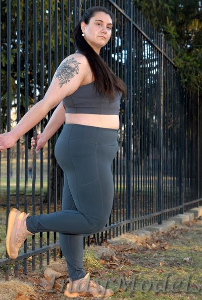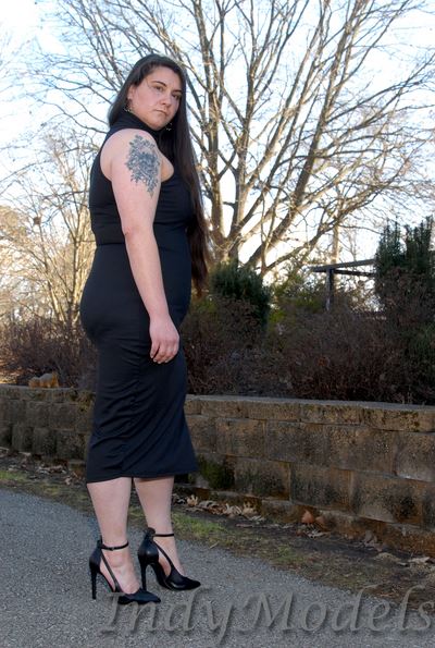 , 5'9", size 16+, shoe 11, with 2 tattoos (arms) and no piercings