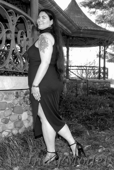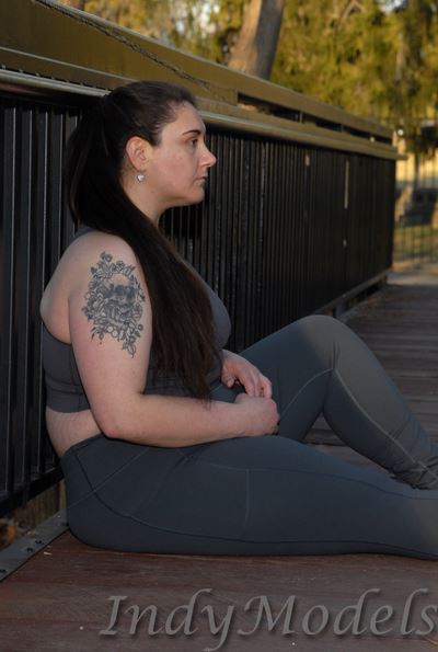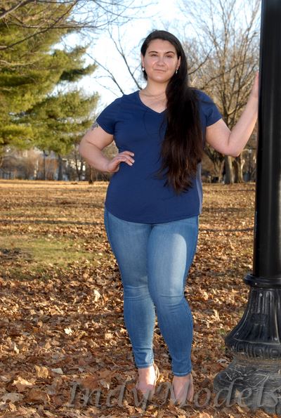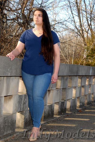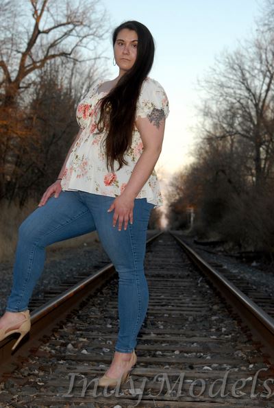 , 5'9", size 16+, shoe 11, with 2 tattoos (arms) and no piercings